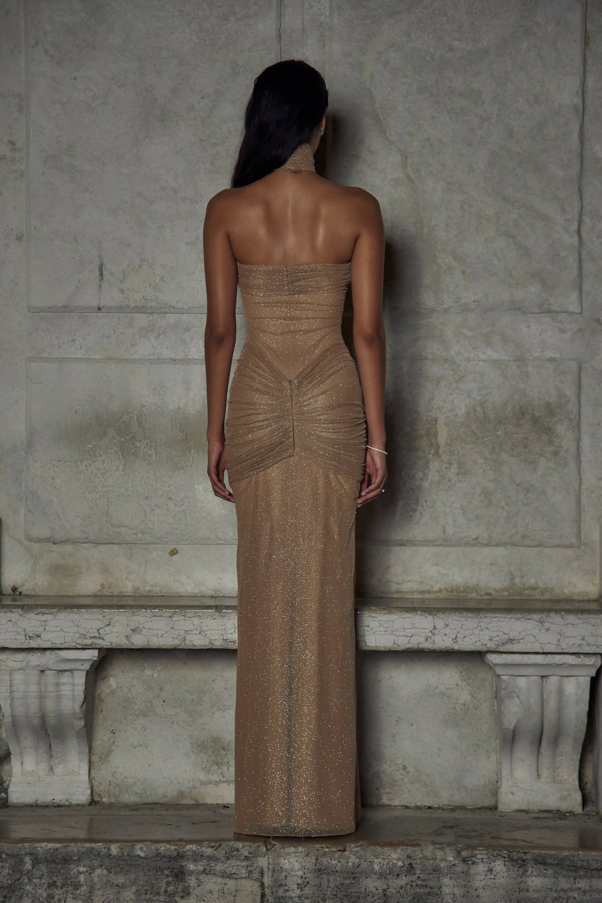 MIA | Charming Maxi Dress is crafted for moments that call for elevated allure. Made from a shimmering, body-contouring fabric, it shapes your figure with refined twist detailing at the bust and hips for a flawless hourglass effect. The strapless neckline highlights your shoulders with timeless elegance, while the fluid maxi length adds a glamorous, elongated finish.