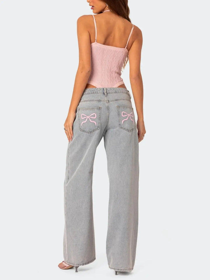 Charming Details – The delicate bow tie accents add a soft, feminine twist that makes your denim stand out.